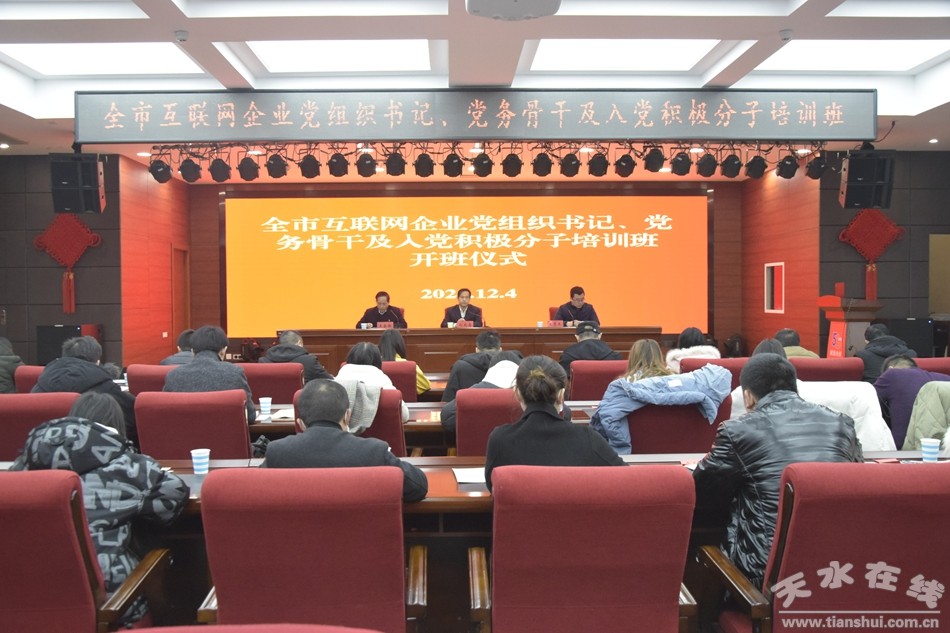 為進(jìn)一步加強(qiáng)全市互聯(lián)網(wǎng)企業(yè)黨建工作,提升企業(yè)黨支部黨務(wù)工作能力和黨員綜合素質(zhì),12月3日至6日,市委組織部、市委網(wǎng)信辦、市互聯(lián)網(wǎng)行業(yè)黨工委聯(lián)合舉辦天水市互聯(lián)網(wǎng)企業(yè)黨組織書記、黨務(wù)骨干及入黨積極分子培訓(xùn)班。市委宣傳部副部長(zhǎng)、市委網(wǎng)信辦主任、市互聯(lián)網(wǎng)行業(yè)黨工委書記劉越高作開班動(dòng)員講話。