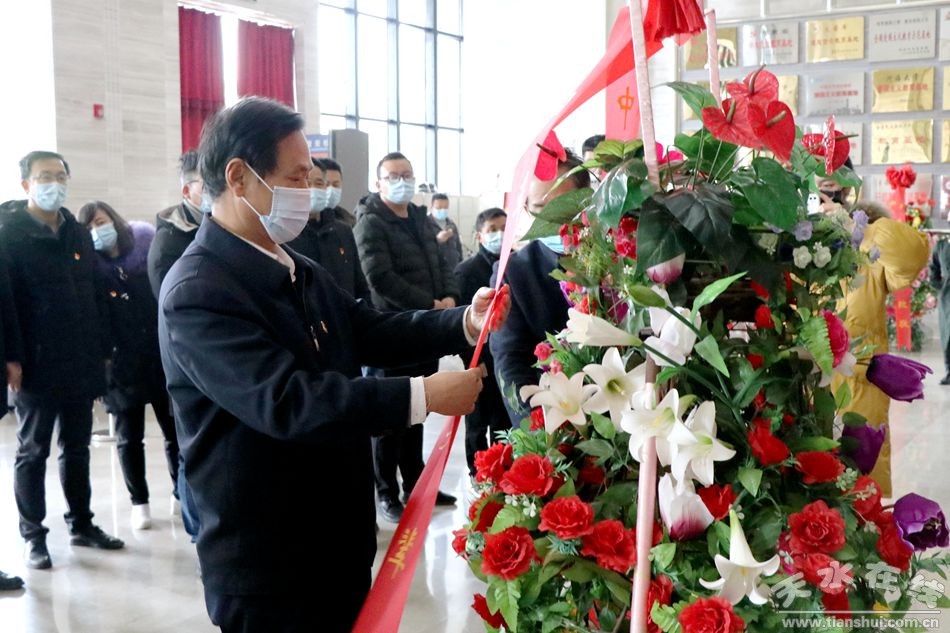 (在兩當(dāng)兵變紀(jì)念館,向革命先輩敬獻(xiàn)花籃)