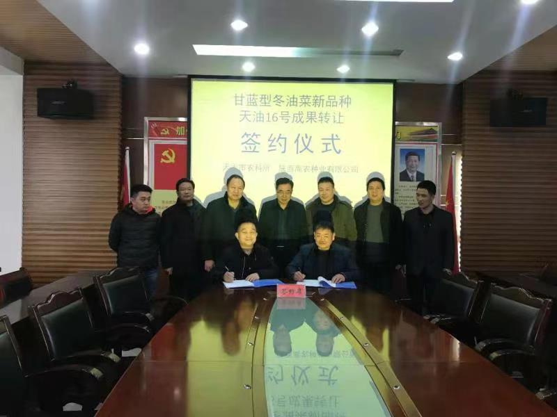 2021年1月19日,天水市農(nóng)業(yè)科學(xué)研究所與陜西高農(nóng)種業(yè)有限公司簽訂冬油菜新品種“天油16號(hào)”成果轉(zhuǎn)化協(xié)議。經(jīng)過雙方協(xié)商,“天油16號(hào)”品種一次性轉(zhuǎn)讓給陜西高農(nóng)種業(yè)有限公司,由公司自主進(jìn)行該品種的生產(chǎn)、經(jīng)營、示范及推廣。