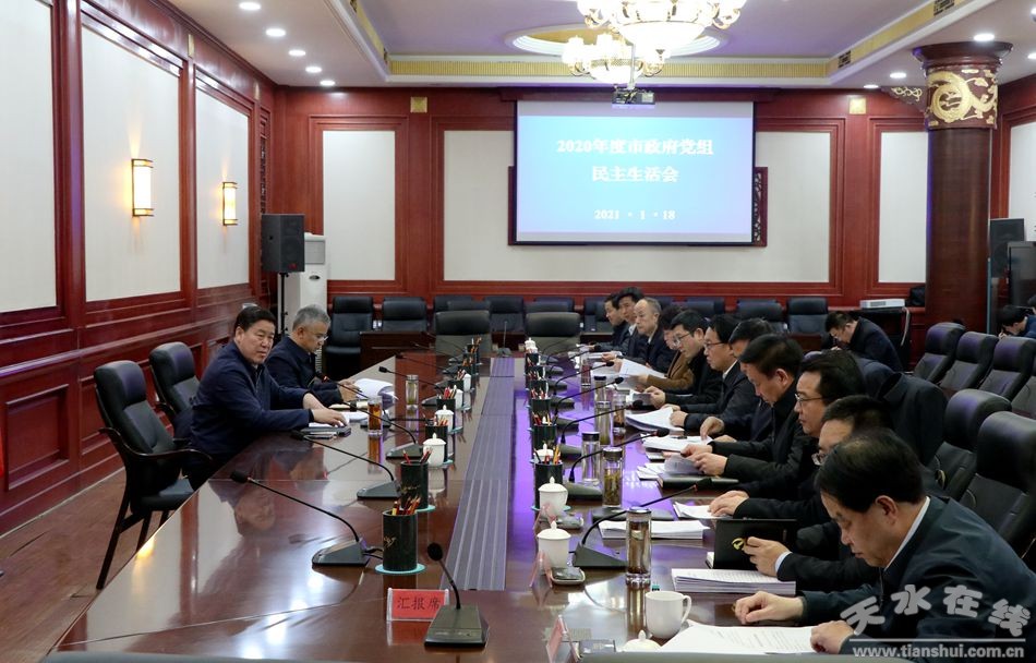 1月18日,天水市政府黨組書記、市長王軍主持召開2020年度民主生活會,黨組副書記趙四輩,黨組成員景丹、逯克宗、張棟梁、汪小娟、郭慶祥、王永祥參加,副市長彭劍鳴和市紀委、市委組織部有關負責同志列席。