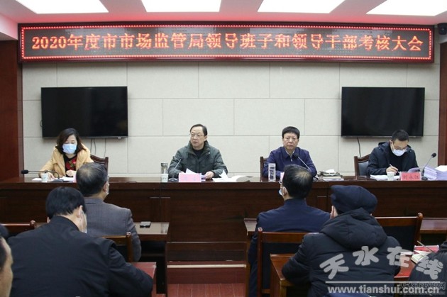 1月22日下午,市委第三考核組對(duì)市市場(chǎng)監(jiān)管局2020年度市管領(lǐng)導(dǎo)班子和領(lǐng)導(dǎo)干部進(jìn)行了考核。市市場(chǎng)監(jiān)管局黨組書記、局長王宏瑋主持會(huì)議并作大會(huì)述職述廉。市市場(chǎng)監(jiān)管局領(lǐng)導(dǎo)班子成員、調(diào)研員、各直屬單位負(fù)責(zé)人及機(jī)關(guān)科以上干部參加會(huì)議。
