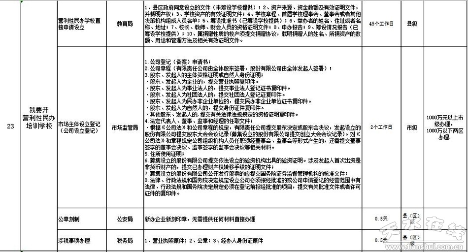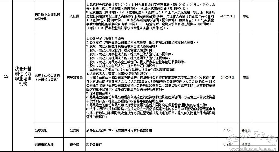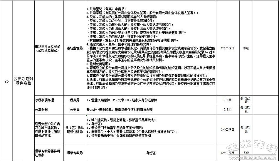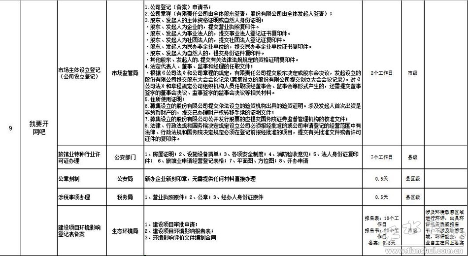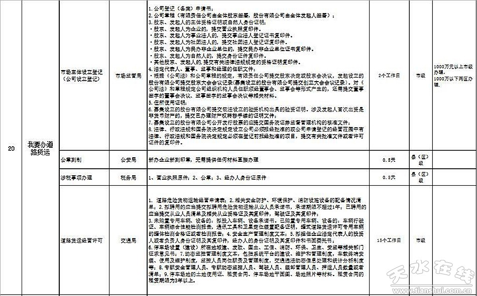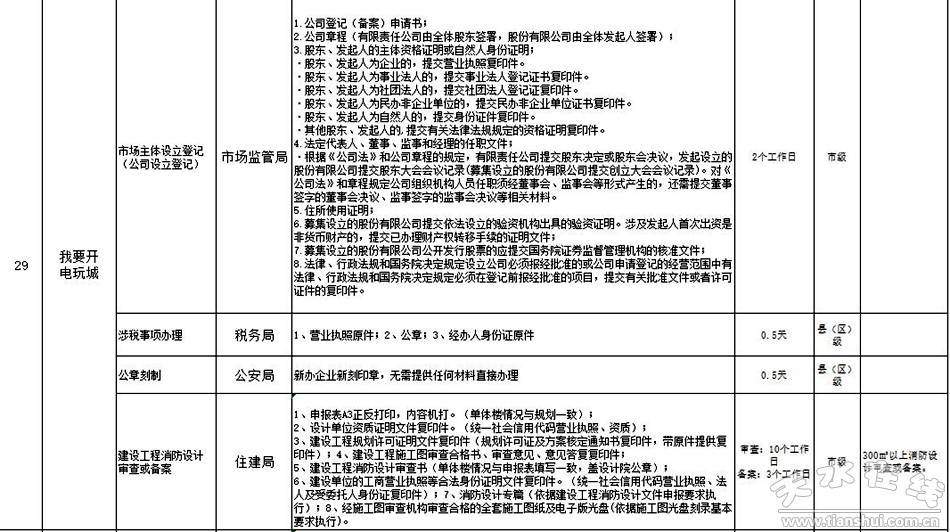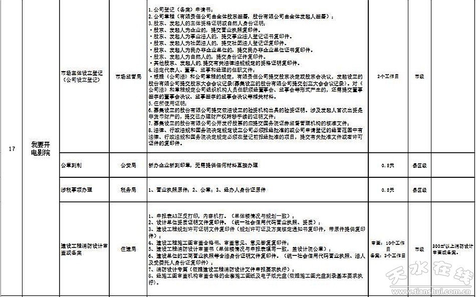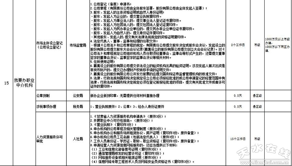 天水市政府政務大廳“一件事一次辦”事項目錄