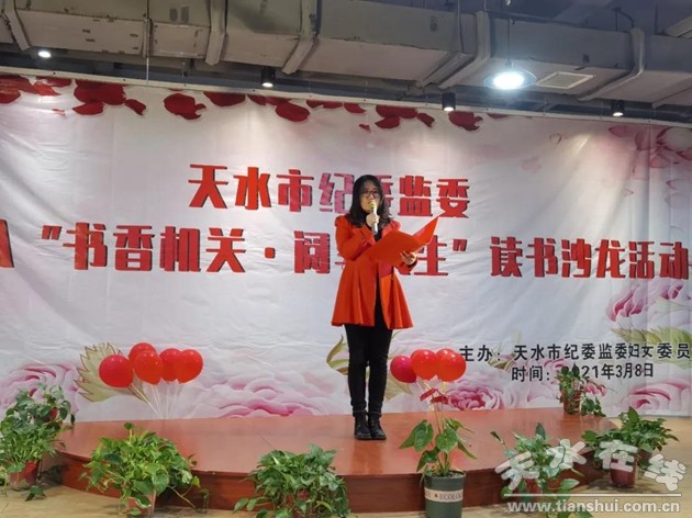 為慶祝第111個(gè)國(guó)際勞動(dòng)?jì)D女節(jié),展示天水市紀(jì)委監(jiān)委機(jī)關(guān)廣大婦女干部蓬勃向上、積極進(jìn)取的精神風(fēng)采,不斷強(qiáng)化“愛(ài)讀書(shū)、讀好書(shū)、善讀書(shū)”的學(xué)習(xí)理念,充分發(fā)揮文化引領(lǐng)作用,營(yíng)造特色鮮明的機(jī)關(guān)文化。3月8日,天水市紀(jì)委監(jiān)委婦委會(huì)開(kāi)展慶三八“書(shū)香機(jī)關(guān)·閱享人生”讀書(shū)沙龍活動(dòng)。市紀(jì)委常委、市監(jiān)委委員、市委巡察辦主任、市紀(jì)委監(jiān)委婦委會(huì)主任李?lèi)?ài)仙出席并致辭。市紀(jì)委監(jiān)委機(jī)關(guān)、市委巡察辦、市紀(jì)委監(jiān)委派駐(出)紀(jì)檢監(jiān)察機(jī)構(gòu)40余名女干部參加活動(dòng)。