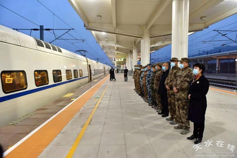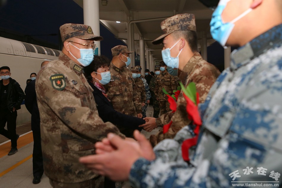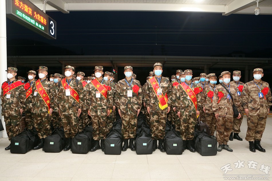 3月18日早上6點(diǎn)多鐘,在天水南站,二百余名新兵身著新戎裝、肩披紅綬帶、胸佩光榮花,帶著家人的期望和祖國的重托,離開家鄉(xiāng)奔赴軍營,開啟軍旅生活。市委常委、天水軍分區(qū)司令員宋英武,副市長汪小娟,天水軍分區(qū)政委石明,市退役軍人事務(wù)局主要負(fù)責(zé)同志等為新兵送行。