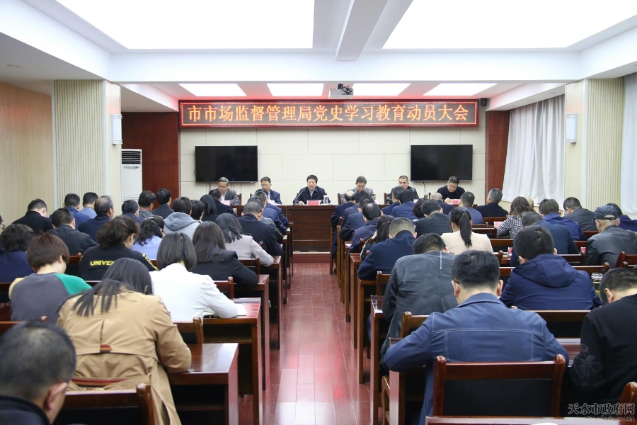3月22日,天水市市場監(jiān)管局召開黨史學(xué)習(xí)教育動員大會,認(rèn)真貫徹落實(shí)中央和省、市委黨史學(xué)習(xí)教育動員大會部署要求,全面動員和安排部署市局系統(tǒng)黨史學(xué)習(xí)教育。黨組書記、局長王宏瑋作動員講話。局領(lǐng)導(dǎo)班子成員,四級以上調(diào)研員,各直屬單位主要負(fù)責(zé)人和機(jī)關(guān)全體黨員干部共計100余人參加會議。