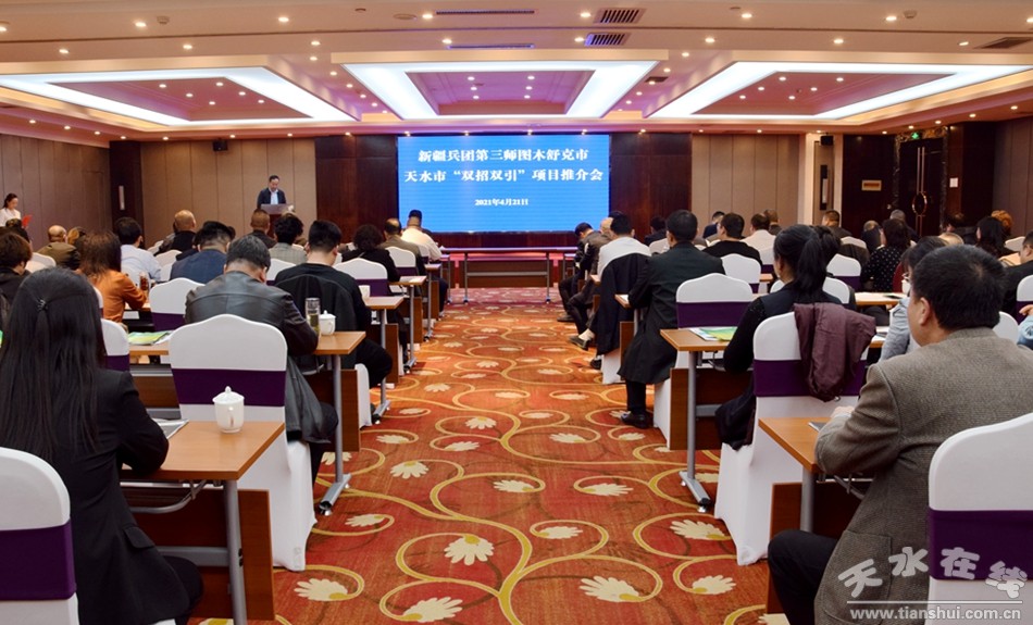 4月21日,新疆兵團(tuán)第三師圖木舒克市“雙招雙引”項(xiàng)目推介會在天水賓館舉行。