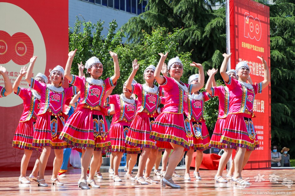 “舞動隴原”廣場舞展演比賽是甘肅省為慶祝建黨100周年舉辦的“隴原兒女心向黨”系列活動之一。按照省上關(guān)于舉辦甘肅省慶祝建黨百年“舞動隴原”廣場舞展演系列活動的要求,天水市委宣傳部、天水市文化和旅游局、天水市文學(xué)藝術(shù)界聯(lián)合會動員各縣區(qū)、市直各部門積極組織展演選拔活動。經(jīng)過前期的層層選拔和激烈角逐,共選出19支優(yōu)秀的參賽隊伍、近700名演職人員參加了今天的比賽。各參賽作品以紅色題材為主題,深入挖掘了當(dāng)?shù)匚幕厣蛢?nèi)涵,通過豐富多彩的廣場舞表演形式,傳播團結(jié)友愛、健康向上的廣場舞健身文化。