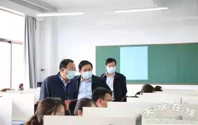 考試期間,市財政局黨組書記、局長張憲泉同志帶隊到天水一中和天水市衛(wèi)生學?键c巡視、檢查落實各項考試組織工作,確保考試安全、平穩(wěn)、有序進行。