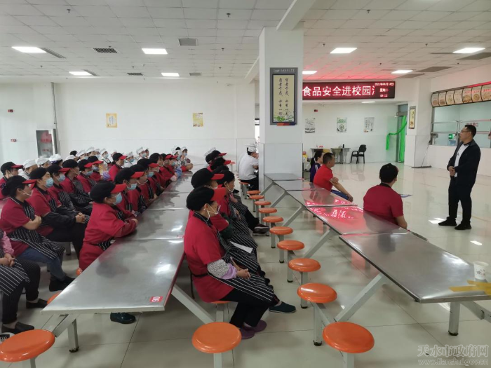 為進一步推動黨史學習教育“我為群眾辦實事”實踐活動走深走實,5月17至18日,市市場監(jiān)管局組織人員深入天水市一中麥積分校,開展“食品安全進校園”主題實踐活動,對學校師生及食堂工作人員進行食品安全教育培訓。1200余名師生及100多名食堂工作人員聆聽了講座和培訓。