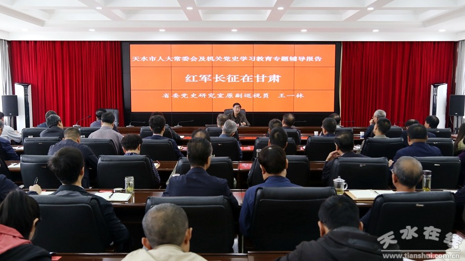 在兩個多小時的輔導(dǎo)報告中,王一林同志結(jié)合自己對甘肅地方黨史的研究成果,從“紅二十五軍長征在甘肅,中央紅軍長征在甘肅,紅二、四方面軍長征在甘肅”三個方面,深入解讀了紅軍長征在甘肅的重要活動和光輝歷程,深刻闡述了紅軍長征在甘肅的地位作用和重大意義,講了一堂精彩生動的思想政治課、黨性教育課和黨史輔導(dǎo)課。
