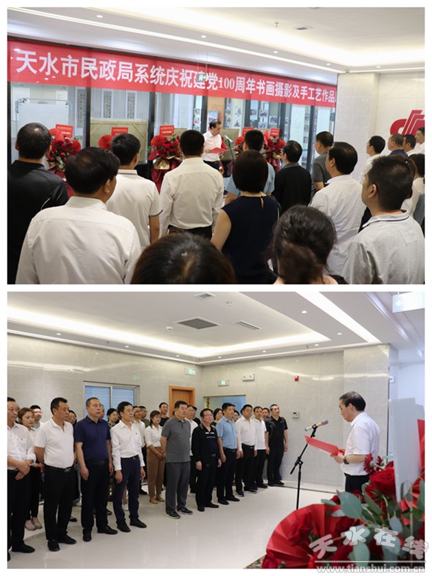 剡海明同志在致辭中指出,此次以書畫、攝影及手工藝展覽的方式慶祝黨的百年華誕,這也是市民政局系統(tǒng)慶祝建黨100周年系列活動(dòng)之一,旨在回顧黨的奮斗歷程,謳歌黨的豐功偉績(jī),進(jìn)一步激勵(lì)和引導(dǎo)局系統(tǒng)廣大干部職工從學(xué)習(xí)黨的歷史中知黨史、感黨恩、跟黨走,堅(jiān)定信念,不忘初心,奮勇前行,在各項(xiàng)工作中走在前、做表率,推動(dòng)局系統(tǒng)黨的建設(shè)和業(yè)務(wù)工作高質(zhì)量發(fā)展。同時(shí)要求,站在新時(shí)代的新節(jié)點(diǎn)上,市民政系統(tǒng)廣大干部職工要更加緊密地團(tuán)結(jié)在以習(xí)近平同志為核心的黨中央周圍,在市委、市政府堅(jiān)強(qiáng)領(lǐng)導(dǎo)下,堅(jiān)持從黨的百年光輝歷程中汲取豐厚滋養(yǎng),初心不改、矢志不渝,始終踐行“民政為民、民政愛民”工作理念,堅(jiān)決守牢民生底線,不斷增進(jìn)群眾福祉,凝心聚力啟航新征程,接續(xù)奮斗邁進(jìn)新時(shí)代,努力譜寫天水民政事業(yè)高質(zhì)量發(fā)展新篇章。