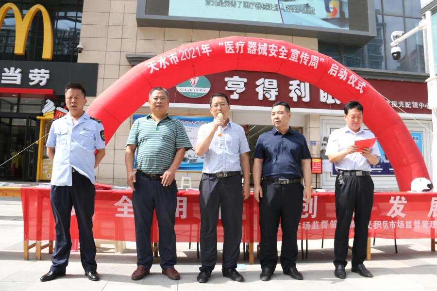 7月19日,由天水市市場(chǎng)監(jiān)管局、麥積區(qū)市場(chǎng)監(jiān)管局聯(lián)合組織開(kāi)展的天水市2021年“醫(yī)療器械安全宣傳周”活動(dòng)啟動(dòng)儀式在麥積區(qū)步行街隆重舉行。