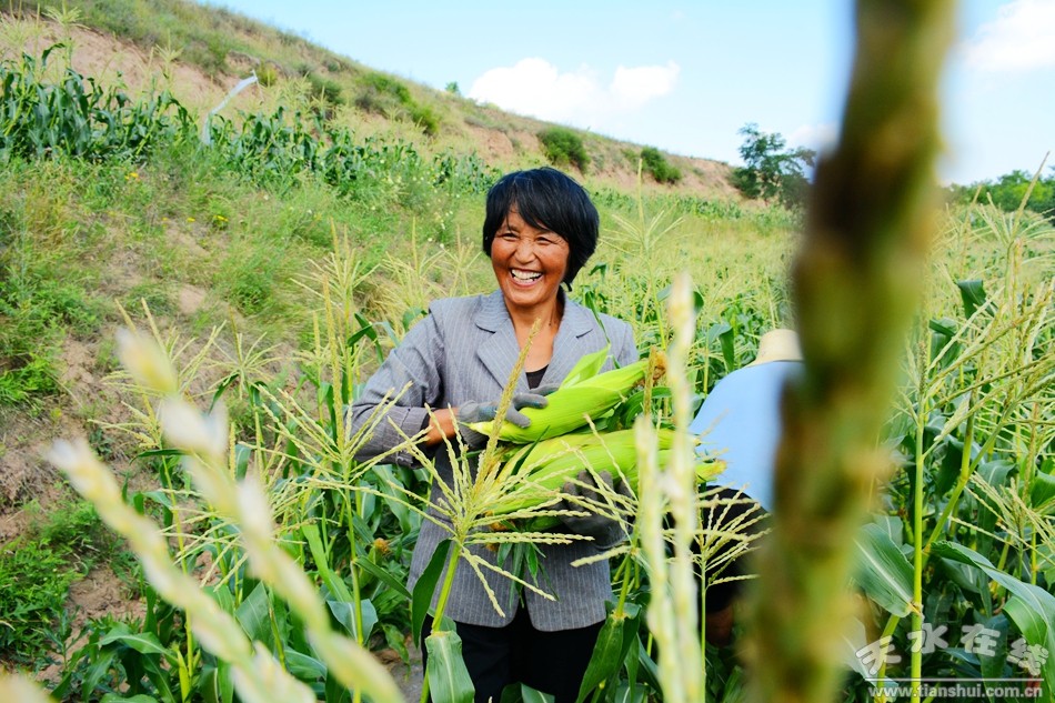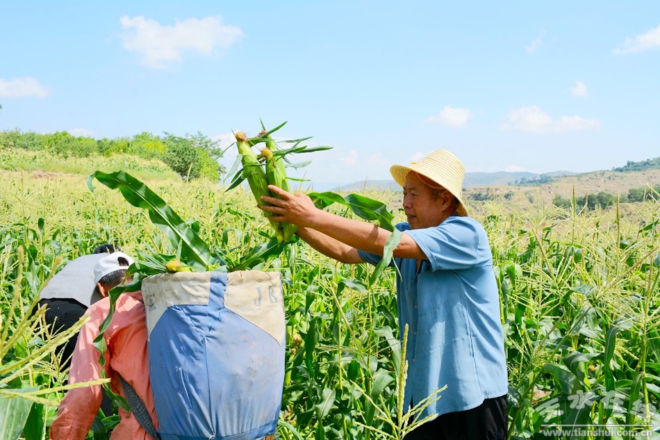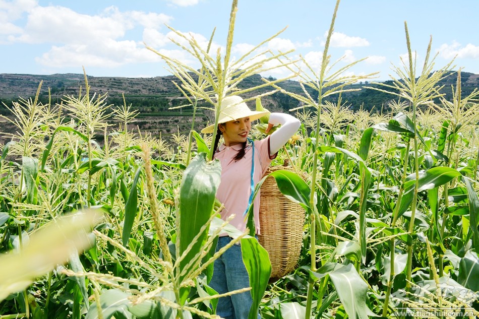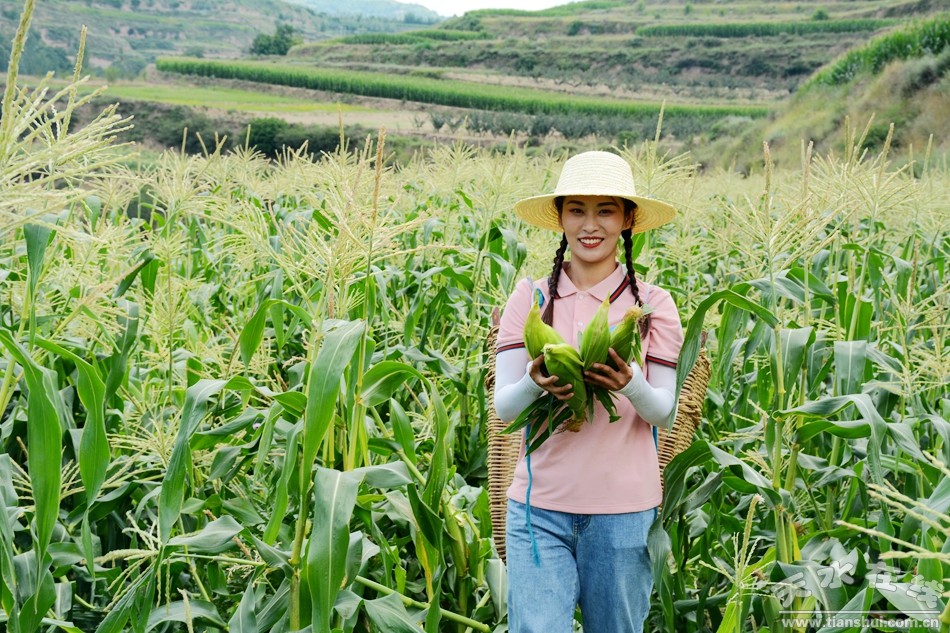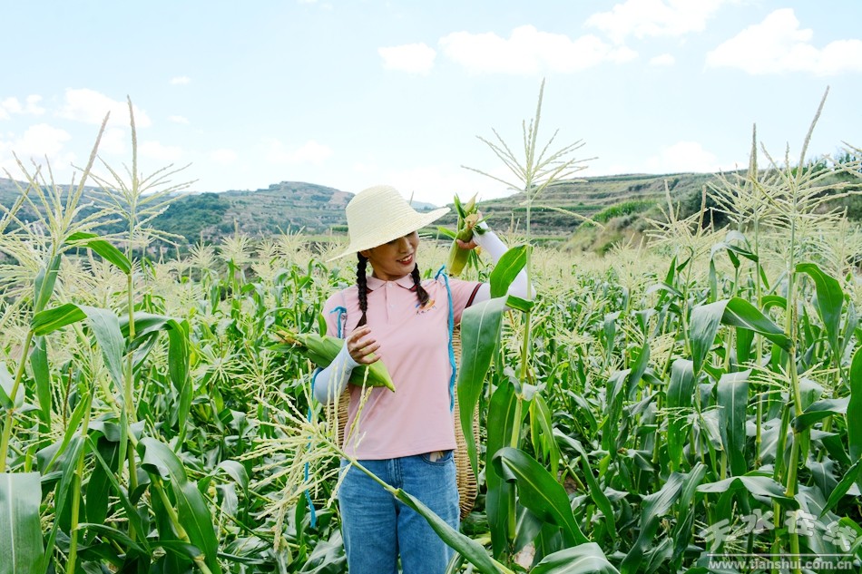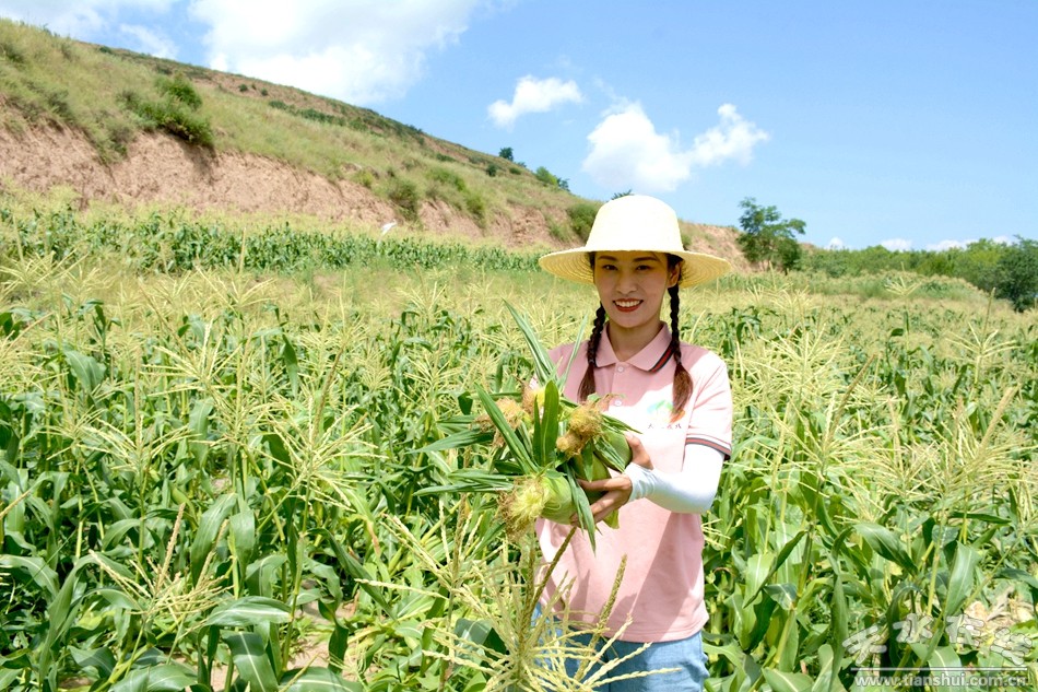 ▲圖為天水在線主播萌萌在采摘水果玉米