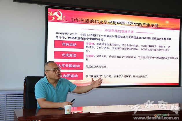 中共天水市委黨校副教授王源遠(yuǎn)作了題為“銘記光輝歷程 凝聚奮進(jìn)力量”的專題講座。另外,還學(xué)習(xí)了新民主主義革命時(shí)期歷史、社會(huì)主義革命和建設(shè)時(shí)期歷史、改革開(kāi)放新時(shí)期歷史、黨的十八大以來(lái)的歷史,認(rèn)真研讀《習(xí)近平論中國(guó)共產(chǎn)黨歷史》《毛澤東、鄧小平、江澤民、胡錦濤關(guān)于中國(guó)共產(chǎn)黨歷史論述摘編》《中國(guó)共產(chǎn)黨簡(jiǎn)史》等部分重要論述。