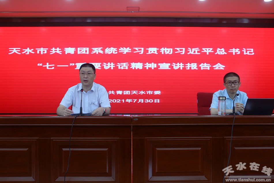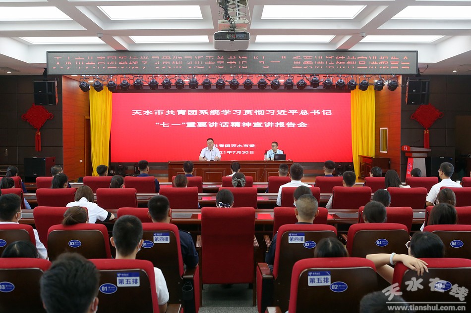 7月30日,天水市共青團系統(tǒng)舉行學習貫徹習近平總書記“七一”重要講話精神宣講報告會。報告會邀請市委講師團成員、市委黨校黨史與黨建教研室副主任、講師侯強強作了《以史為鑒 開創(chuàng)未來——深入學習習近平總書記“七一”重要講話精神》的專題報告。