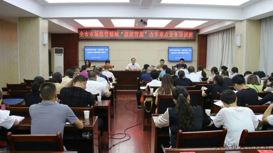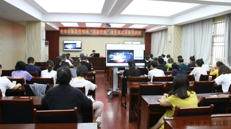 按照2021年度全市干部教育培訓(xùn)計(jì)劃,為進(jìn)一步加快“接放管服”改革,優(yōu)化營(yíng)商環(huán)境,提升市場(chǎng)監(jiān)管系統(tǒng)干部政策理論水平和業(yè)務(wù)能力,7月26日至29日,天水市市場(chǎng)監(jiān)督管理局舉辦了為期4天的全市市場(chǎng)監(jiān)管領(lǐng)域“接放管服”改革重點(diǎn)業(yè)務(wù)專題培訓(xùn)班。來(lái)自各縣區(qū)市場(chǎng)監(jiān)管部門從事登記注冊(cè)、政務(wù)服務(wù)、信用監(jiān)管業(yè)務(wù)的分管領(lǐng)導(dǎo)和業(yè)務(wù)骨干,以及市直相關(guān)部門業(yè)務(wù)人員共計(jì)120人參加了培訓(xùn)。