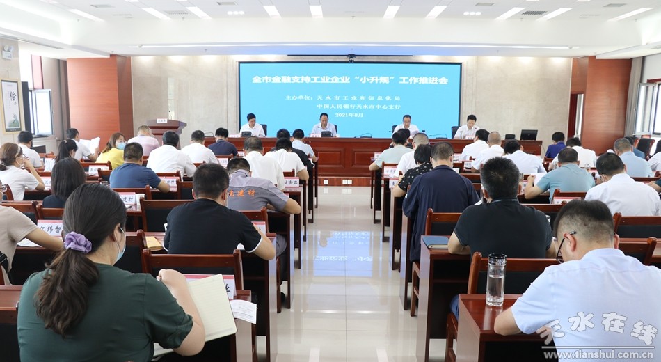 為做好金融支持全市工業(yè)經(jīng)濟(jì)發(fā)展工作,推進(jìn)今年工業(yè)企業(yè)“小升規(guī)”,8月25日,天水市工信局、人行天水市中心支行共同召開了全市金融支持工業(yè)企業(yè)“小升規(guī)”工作推進(jìn)會。