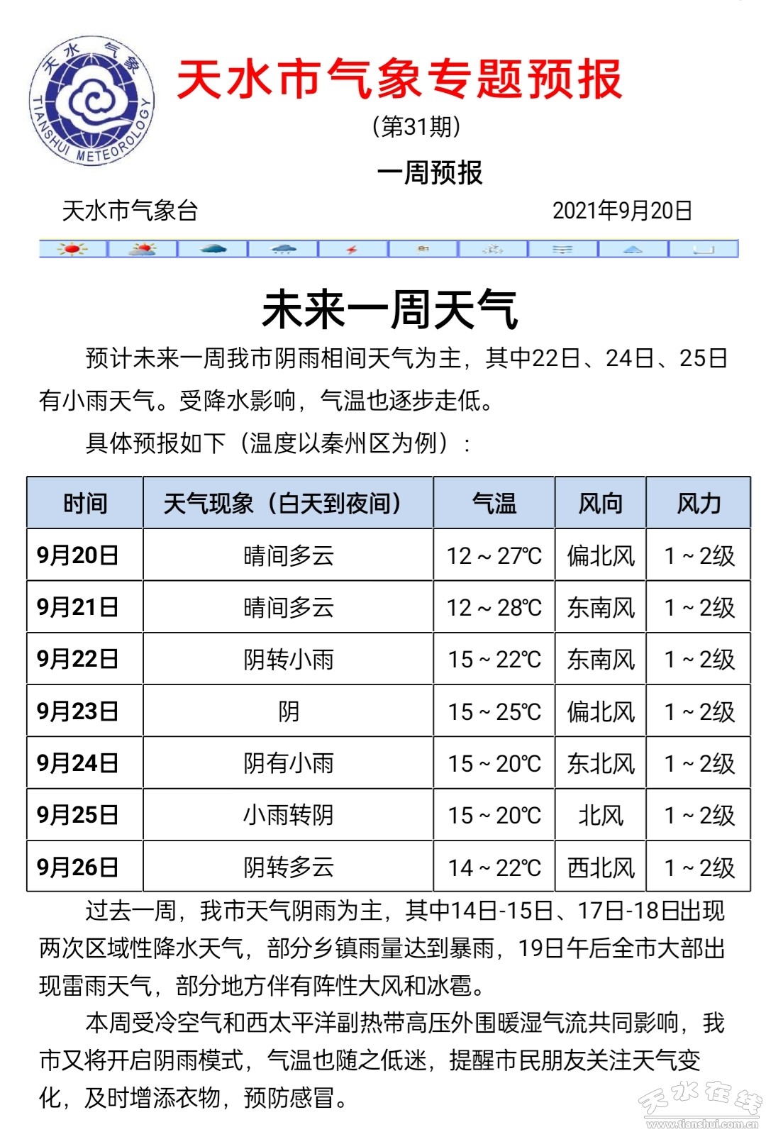 ·天水市氣象臺(tái)發(fā)布9月20日~26日天氣預(yù)報(bào)