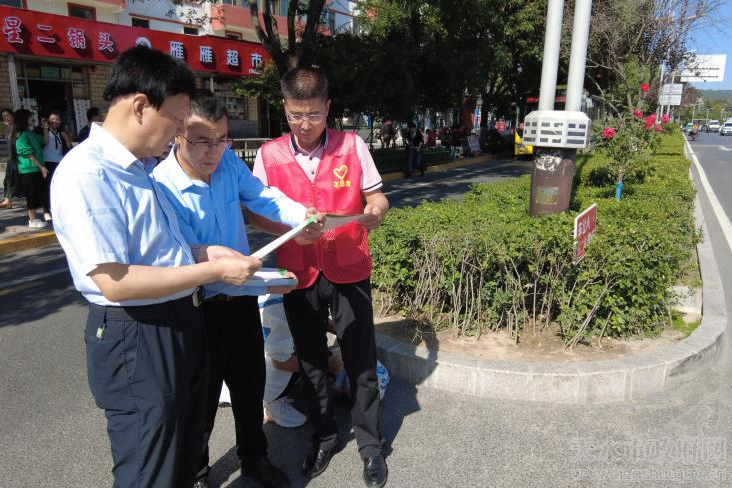 9月21日是我國(guó)傳統(tǒng)節(jié)日中秋節(jié),秦州區(qū)成紀(jì)大道西路附近的堅(jiān)家河市場(chǎng)人頭攢動(dòng),顯得格外熱鬧。為了讓我們生活的城市變的更加美麗,上午7時(shí),天水市市場(chǎng)監(jiān)管系統(tǒng)志愿服務(wù)隊(duì)準(zhǔn)時(shí)出現(xiàn)在花鳥市場(chǎng)北口“包街”責(zé)任路段開展創(chuàng)城志愿活動(dòng),成為清晨街頭一抹亮麗的風(fēng)景。市市場(chǎng)監(jiān)管局黨組書記、局長(zhǎng)王宏瑋及領(lǐng)導(dǎo)班子成員伏虎、安和平、聶惠仁、賈文斌、王俊峰分別帶領(lǐng)相關(guān)科室人員深入“包街”路段和賓館飯店、農(nóng)貿(mào)市場(chǎng)及街區(qū)等各實(shí)測(cè)點(diǎn)位對(duì)創(chuàng)城工作開展了督導(dǎo)檢查。