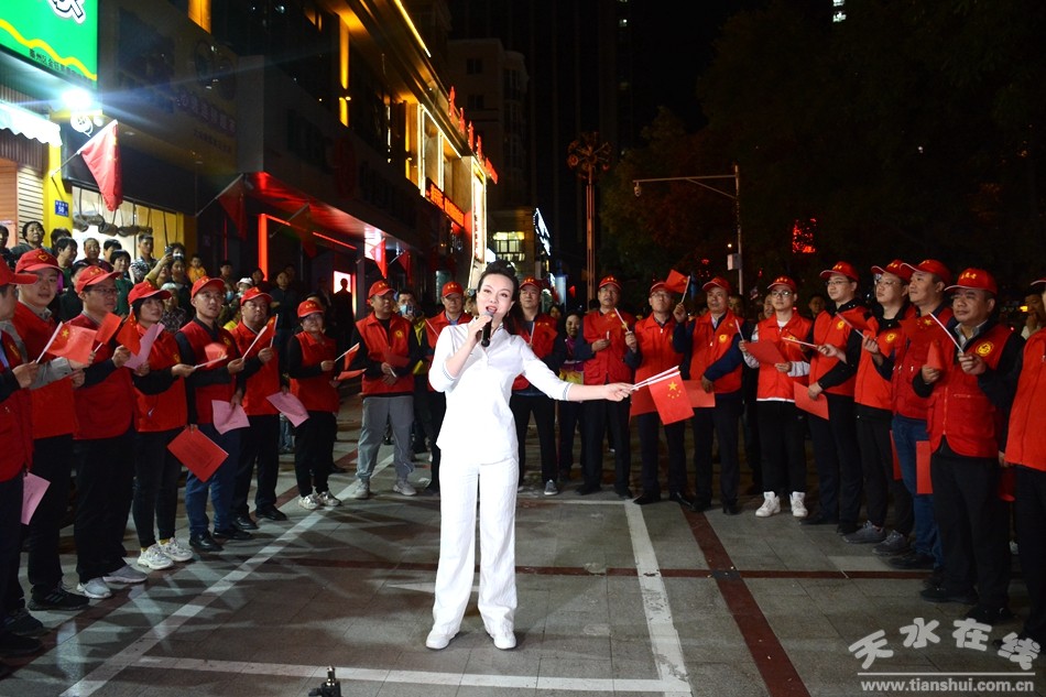 9月23日晚,由天水市委政法委主辦,市文旅局、天水在線承辦的 “慶國慶·宣創(chuàng)城”快閃活動(dòng)在市委政法委“包街”責(zé)任路段秦州區(qū)大眾南路順利舉行。本次活動(dòng)旨在傳遞文明、助力創(chuàng)城,營造人人參與創(chuàng)城行動(dòng)、人人共享創(chuàng)城成果的濃厚創(chuàng)城氛圍。