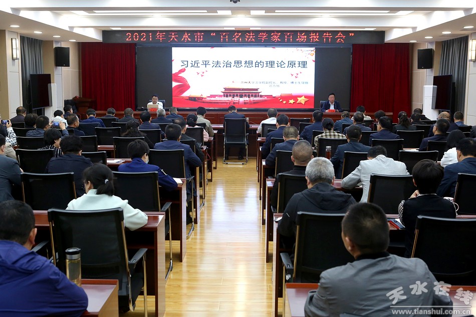 9月27日,由天水市委政法委、市法學會主辦的2021年天水市百名法學家百場報告會舉行。報告會邀請到蘭州大學法學院副院長、教授、博士生導師遲方旭做了題為《習近平法治思想的理論原理》專題輔導報告。