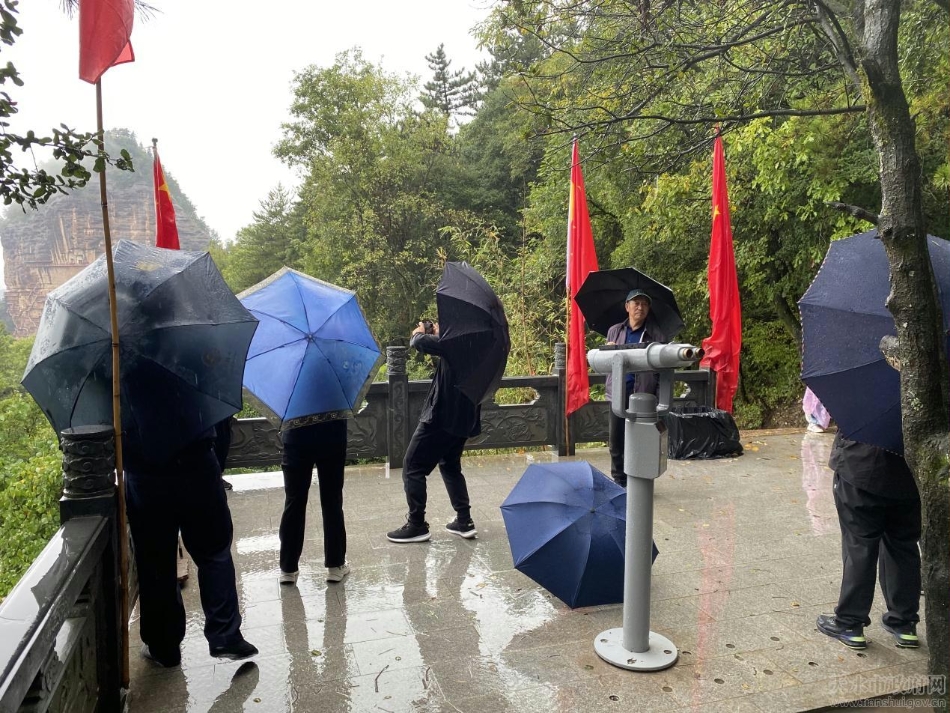 (游客在觀景臺感受“麥積煙雨”的魅力) |