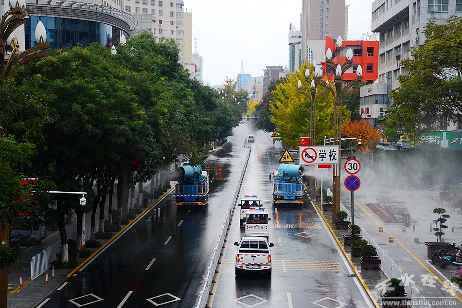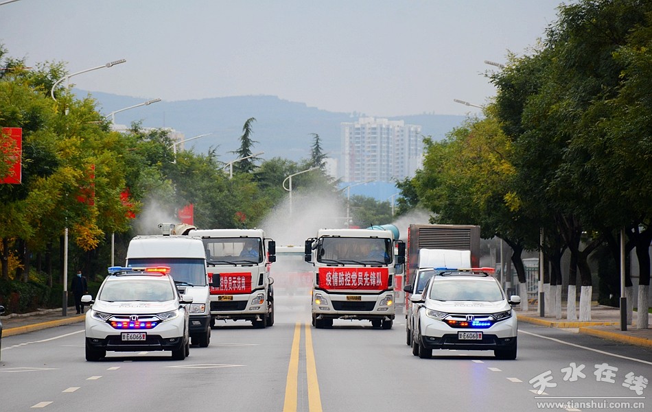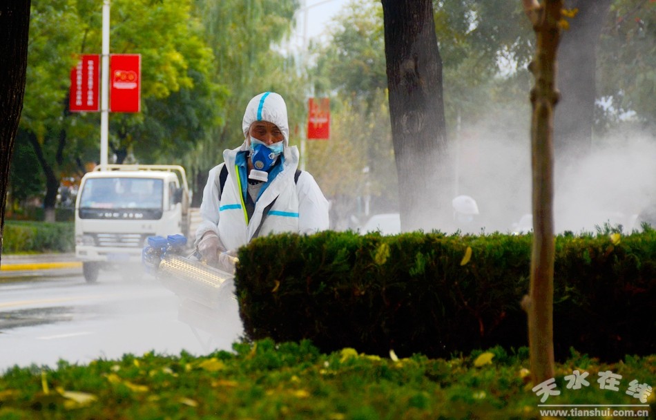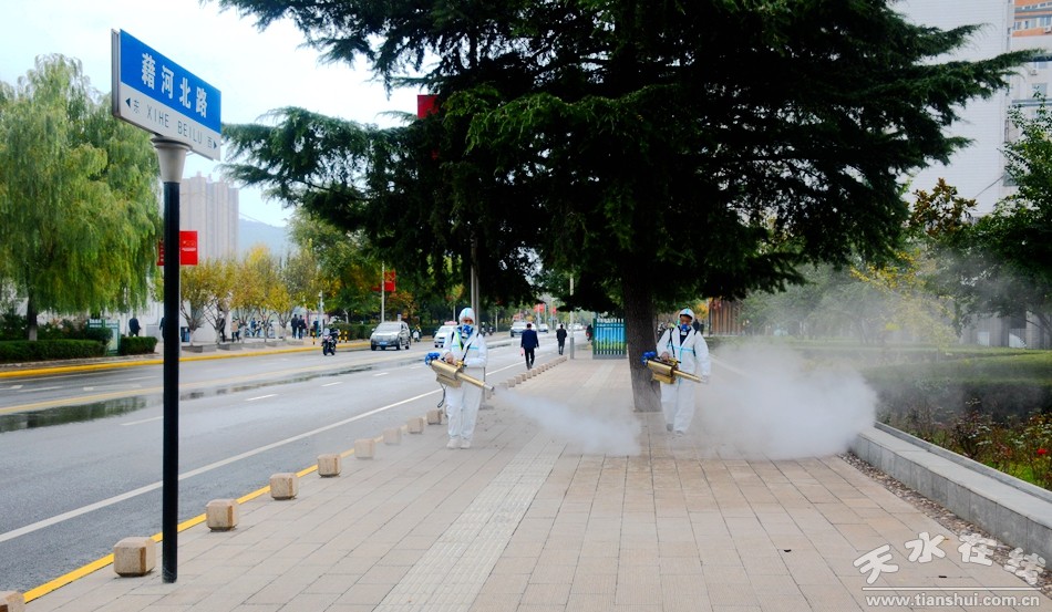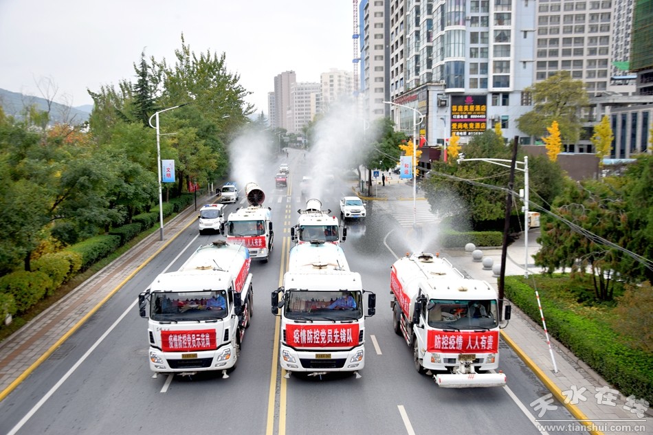 10月26日,秦州區(qū)采用灑水車、小型高壓沖洗車及電動噴霧器等設(shè)備,對全區(qū)主次干道、學(xué)校、汽車站等城區(qū)公共區(qū)域及農(nóng)村所有村莊、院落、巷道等區(qū)域開展全面集中消殺,堅決打好疫情防控“阻擊戰(zhàn)”,全力守護(hù)好人民群眾的生命安全和身體健康。