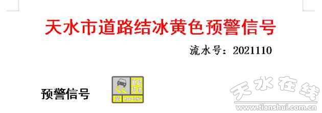 天水市氣象臺(tái)2021年11月28日22時(shí)59分發(fā)布道路結(jié)冰黃色預(yù)警信號(hào):