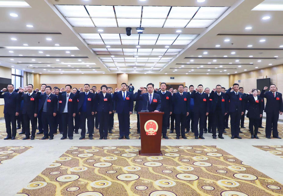 會(huì)議結(jié)束后,張建杰主持憲法宣誓儀式并監(jiān)誓,新任命人員依法進(jìn)行憲法宣誓。