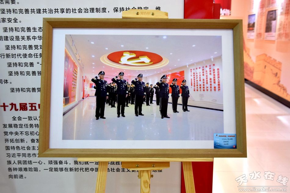 本次主題攝影展從2021年12月初開始,面向全市公安機關(guān)民警、輔警和退休老干部共征集作品110余幅,經(jīng)過層層篩選,選定60幅在市公安局黨建文化基地集中展出。作品主要展示了天水公安一年來深入開展“鑄魂強基,爭創(chuàng)一流”行動,積極投身慶祝建黨100周年和公祭伏羲大典等節(jié)會安保、戰(zhàn)疫情、向“兩類案件”全面宣戰(zhàn)、百日攻堅決戰(zhàn)行動,以及黨史學(xué)習(xí)教育、隊伍教育整頓等中心工作的點點滴滴。作品主題突出、特色鮮明,集中展示了天水公安“對黨忠誠、服務(wù)人民、執(zhí)法公正、紀(jì)律嚴明”的生動實踐,展現(xiàn)了天水警營火熱的戰(zhàn)斗生活和昂揚的精神風(fēng)貌。