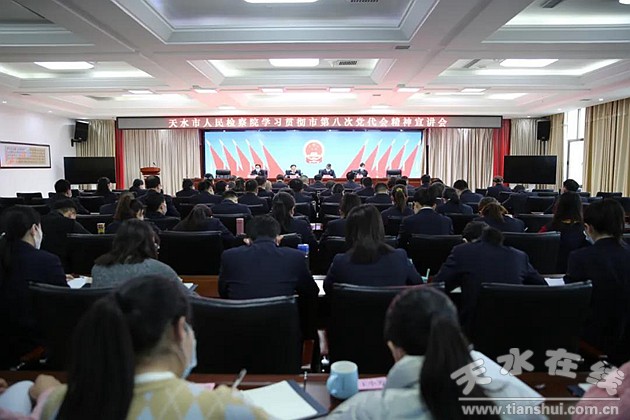 為深入學(xué)習(xí)貫徹天水市第八次黨代會精神,更進(jìn)一步推動“建強(qiáng)副中心,走出新路子”的目標(biāo)方向在檢察機(jī)關(guān)落地生根,1月14日,天水市人民檢察院組織召開了學(xué)習(xí)貫徹市第八次黨代會精神宣講會,市檢察院黨組成員、檢委會專職委員、三級高級檢察官及全體干警參加會議。