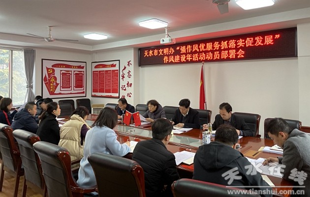 2月21日上午,天水市文明辦召開(kāi)“強(qiáng)作風(fēng)、優(yōu)服務(wù)、抓落實(shí)、促發(fā)展”作風(fēng)建設(shè)年活動(dòng)動(dòng)員大會(huì)。領(lǐng)導(dǎo)班子成員,全體干部職工參加了會(huì)議。
