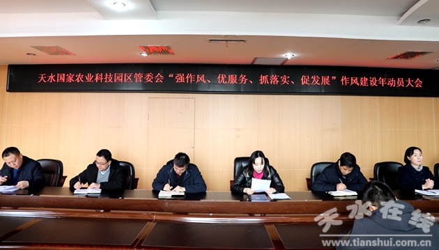 2月24日,天水國家農業(yè)科技園區(qū)管委會召開“強作風、優(yōu)服務、抓落實、促發(fā)展”作風建設年活動動員大會。園區(qū)管委會全體干部職工、各黨支部負責同志參加了會議。