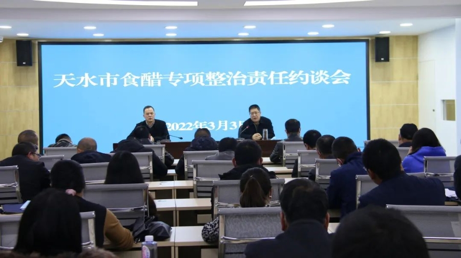 3月3日下午,省市場(chǎng)監(jiān)管局組織召開全省食醋生產(chǎn)企業(yè)責(zé)任約談視頻會(huì),通報(bào)2021年度全省食醋生產(chǎn)企業(yè)監(jiān)督檢查及監(jiān)督抽檢發(fā)現(xiàn)的問題。會(huì)后,天水市市場(chǎng)監(jiān)督管理局組織召開全市食醋專項(xiàng)整治責(zé)任約談會(huì)議,就下一步開展食醋專項(xiàng)整治進(jìn)行了安排部署,市市場(chǎng)監(jiān)管局黨組成員王俊峰參加約談會(huì)并講話。全市23戶食醋生產(chǎn)企業(yè)和部分食醋加工小作坊負(fù)責(zé)人、以及縣區(qū)市場(chǎng)監(jiān)管人員共47人參加了會(huì)議。