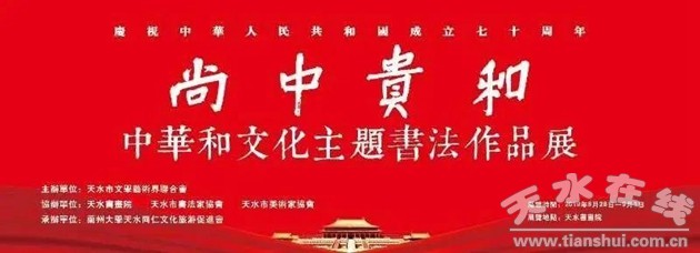 2019年8月,蘭州大學天水同仁文化旅游促進會承辦“尚中貴和——中華和文化”主題書法展。