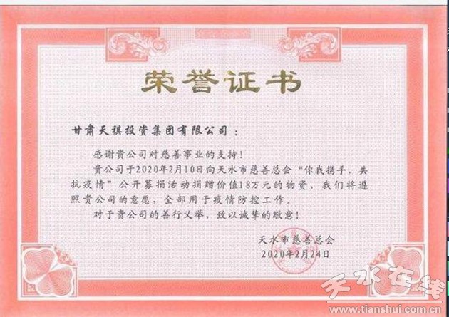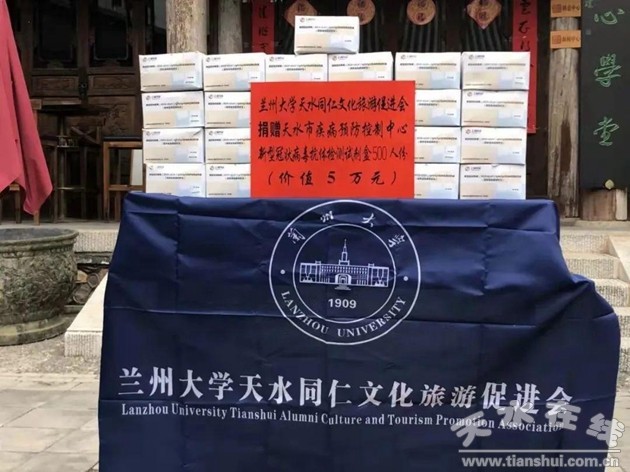 2020年2月26日,蘭州大學天水同仁文化旅游促進會為抗擊新冠疫情,向天水市疾控中心捐贈價值50000元的新型冠狀病毒抗體檢測試劑盒500人份。