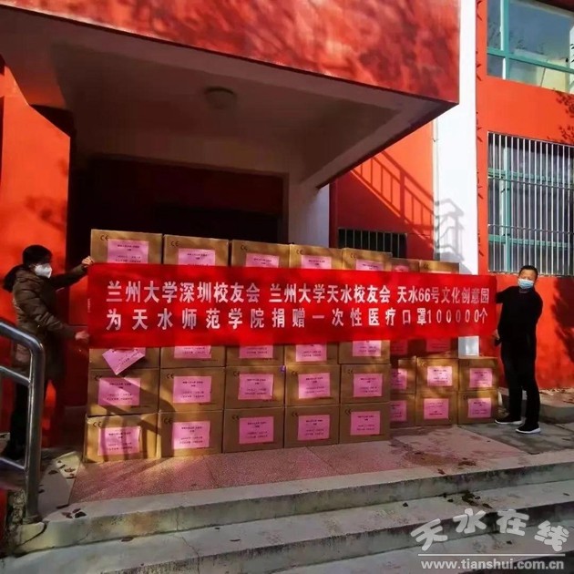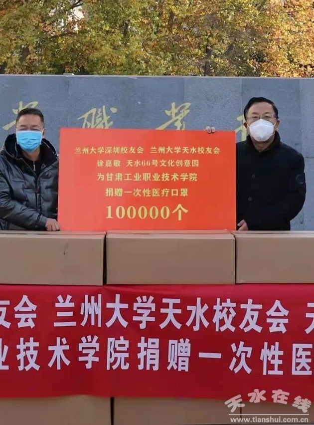 ▲為天水師范學院捐贈一次性醫(yī)療口罩十萬個