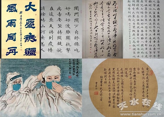 發(fā)揮特長, 匯聚防控合力。疫情期間,廣大老同志發(fā)揮自身特長,以不同的藝術(shù)形式為戰(zhàn)“疫”發(fā)聲。有的老同志第一時間創(chuàng)作書法作品;有的用畫筆描摹一線醫(yī)務(wù)人員的身影;有的用文字表達他們對戰(zhàn)勝疫情的信心。廣大離退休干部用文字、畫筆等形式,記錄著抗疫工作中的點點滴滴。天水市委政法委原政治部主任楊迎勛、秦安縣退休干部劉繼業(yè)、天水電信公司退休職工雷萍創(chuàng)作詩詞多首,以文學(xué)記錄的方式,表達對黨和政府抗疫工作的堅定支持,抒發(fā)對廣大抗疫工作者的贊美之情;麥積區(qū)道北街道辦事處原人大聯(lián)絡(luò)處主任劉永勝充分發(fā)揮特長優(yōu)勢,通過筆墨丹青,致敬抗疫斗爭最前線的逆行者;麥積區(qū)防疫站原辦公室主任雷存海創(chuàng)作了“大愛無疆? 風(fēng)雨同舟”、甘肅省小隴山林業(yè)局李子園林場退休職工韓小英的創(chuàng)作了“眾志成城 抗擊疫情”等書法、繪畫作品,為打贏疫情防控戰(zhàn)加油鼓勁。全市離退休干部在這次戰(zhàn)“疫”行動中,以自己特有的方式,傳遞同心抗疫的正能量,為阻擊疫情注入了“銀發(fā)”力量。