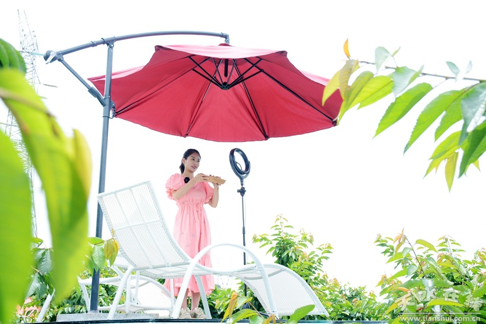 (圖為天水在線主播萌萌在煙鋪櫻桃園直播帶貨)
