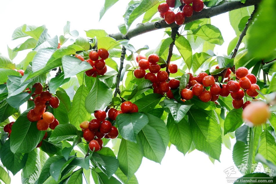 天水市秦州區(qū)玉泉鎮(zhèn)煙鋪村距市區(qū)僅3公里之遙,早在七八千年前母系氏族部落就在這里繁衍生息。煙鋪村是典型的半濕潤半干旱溫帶氣候,冬無嚴(yán)寒,夏無酷暑,雨量適中,光照充足,肥水中等,土層深厚。得天獨(dú)厚的自然資源優(yōu)勢,特別適宜無公害優(yōu)質(zhì)果品生產(chǎn),是我國最佳的大櫻桃生產(chǎn)區(qū)域之一。這里的上千畝櫻桃園栽培的品種有紅燈、8-129、美早、意大利早紅、莫莉、早大果、巨紅、佳紅、佐滕錦、勝利、友誼、拉賓斯、8-102、斯坦勒、薩米脫、賓庫、那翁、艷陽、奇好、宇宙、先鋒、雷尼爾、7-101等20多個(gè)。