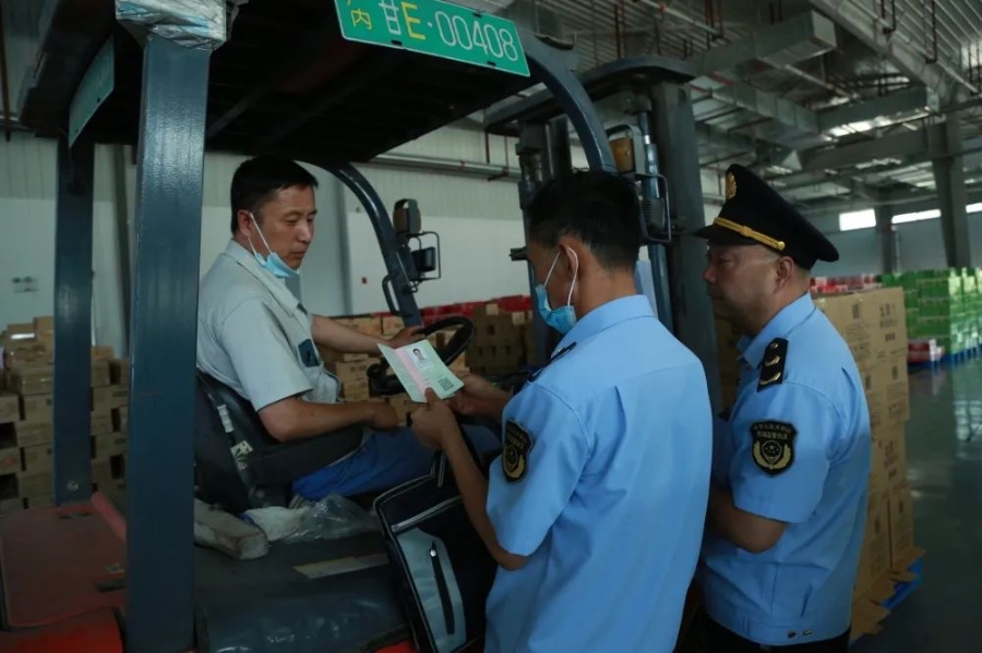 隨后,謝崇太帶隊,執(zhí)法人員一行數(shù)人來到當?shù)匾患夜瓘S,開展現(xiàn)場檢查。天氣酷熱,執(zhí)法人員揮汗如雨,深入生產(chǎn)車間,詳細了解食品、特種設備安全及產(chǎn)品質量責任履行情況,提出了具體意見建議。一轉瞬,又深入儲存冷庫,冒著低溫查看產(chǎn)品批號信息及認證標志。可謂冰火兩極。