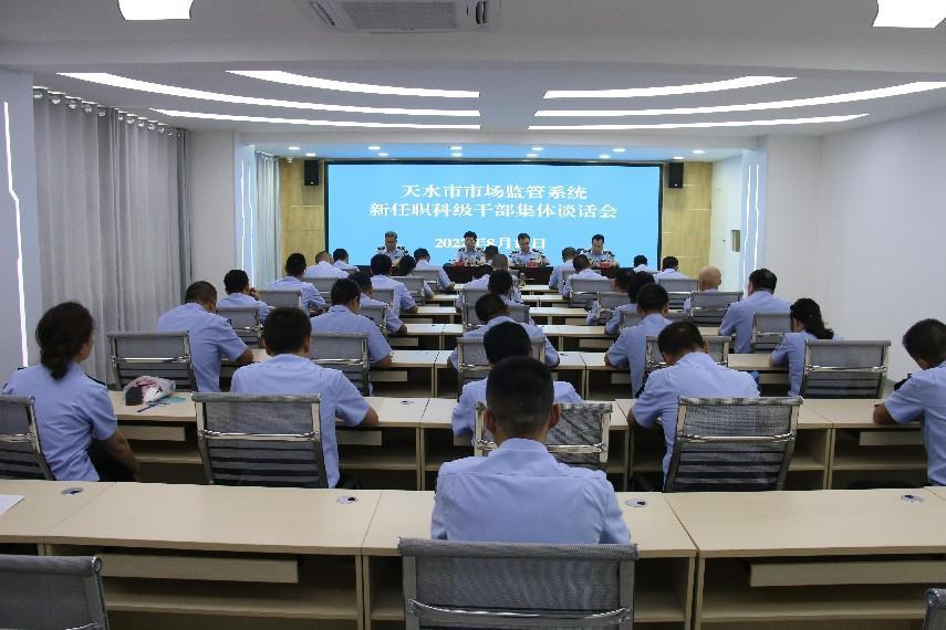 8月12日,天水市市場監(jiān)管局召開集體談話會,對市市場監(jiān)管綜合行政執(zhí)法隊新任職的23名科級干部進行了任前談話。市局黨組書記、局長王宏瑋出席會議并講話,黨組成員、市紀委監(jiān)委派駐市市場監(jiān)管局紀檢監(jiān)察組組長伏虎主持會議,黨組成員、副局長賈文斌宣讀了任免文件。