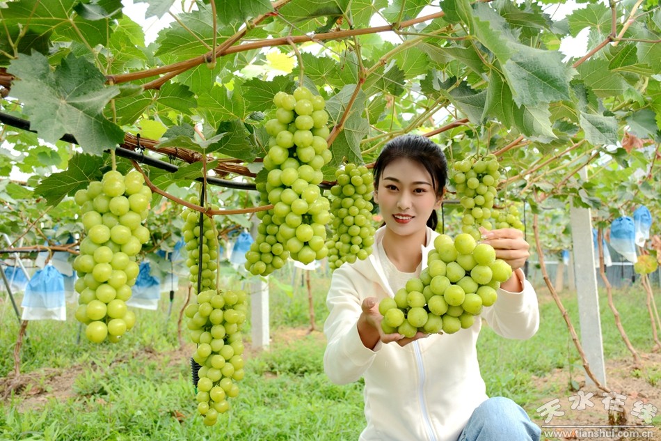 (天水在線主播萌萌打卡麥積區(qū)社棠鎮(zhèn)柏林村“陽光玫瑰”葡萄園)
