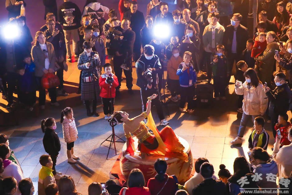 (圖為天水在線主播萌萌在秦州區(qū)中華西路步行街表演“大地灣女神”)