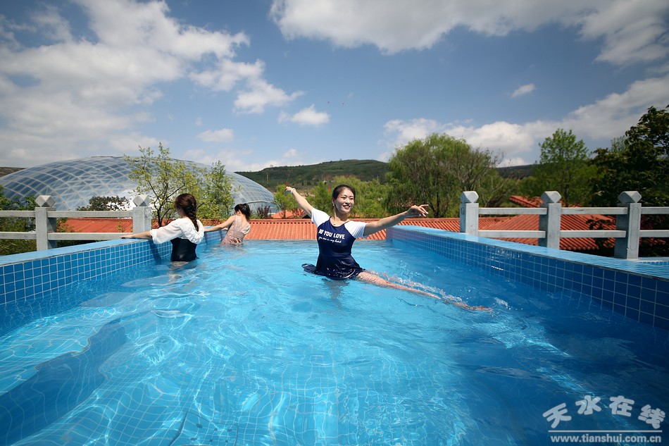 (圖為天水在線主播萌萌宣傳麥積山溫泉) |