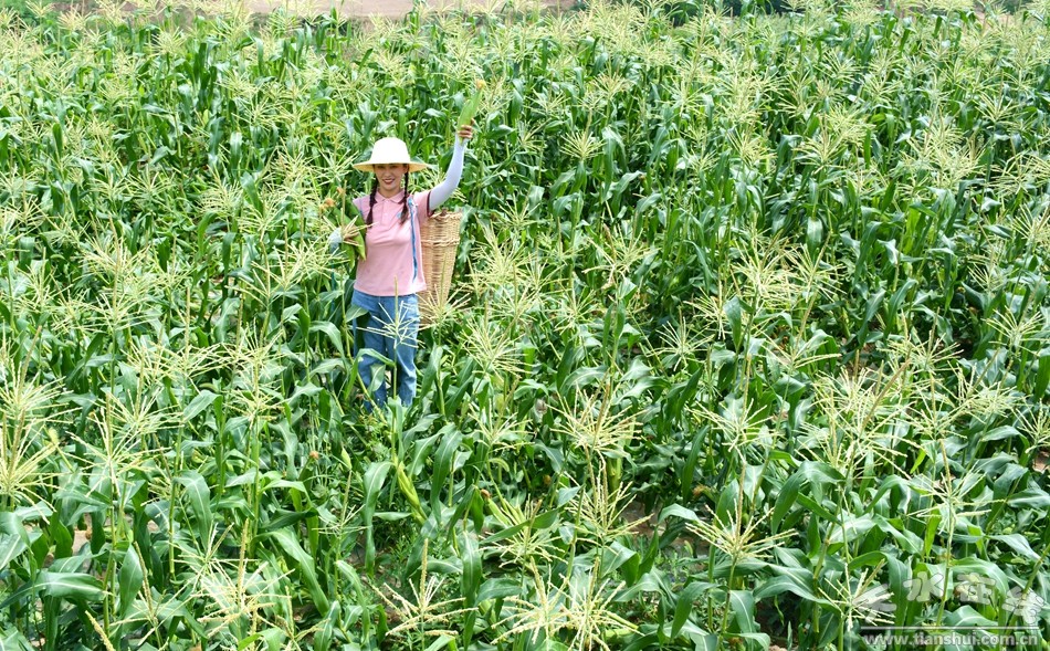 (圖為天水在線主播萌萌宣傳推介武山甜玉米)