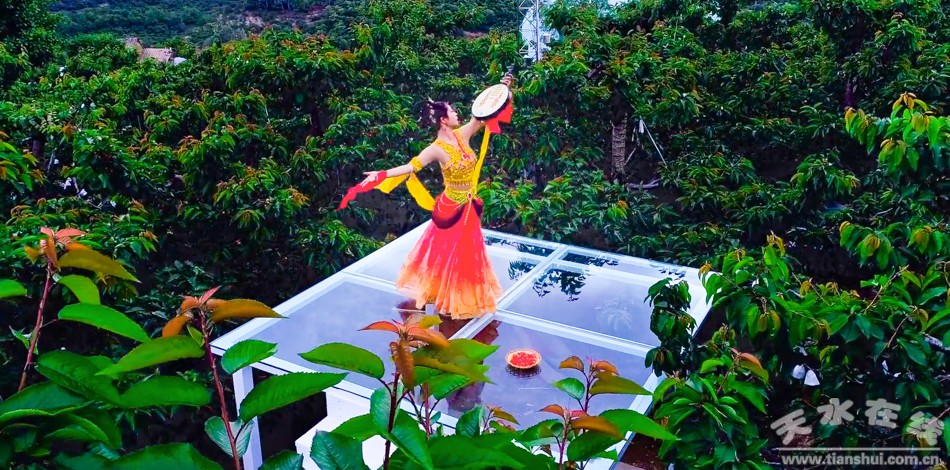 (圖為天水在線主播萌萌在清水花舞北山園拍攝宣傳片)