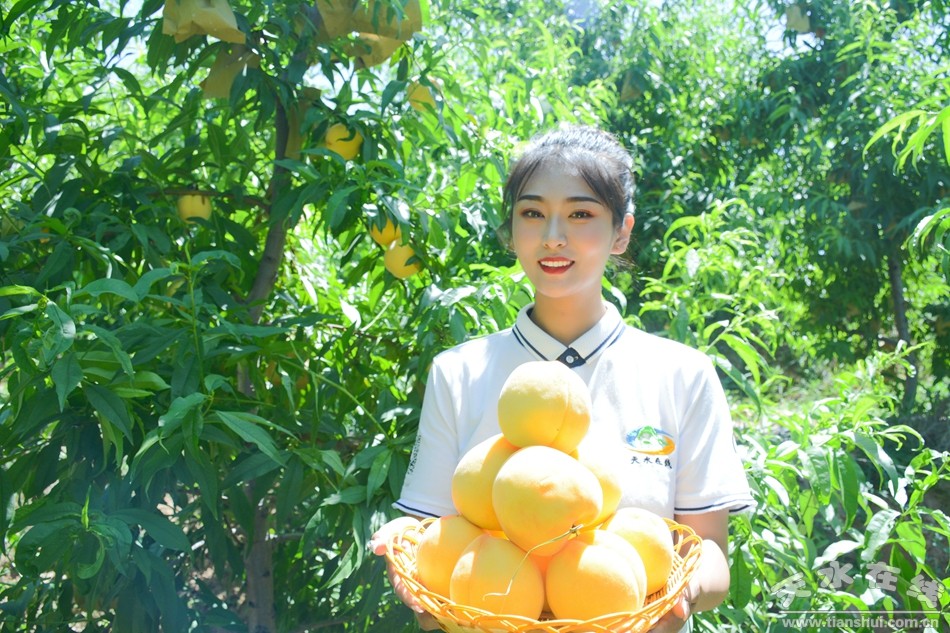 (圖為天水在線主播萌萌為秦安蜜桃代言)