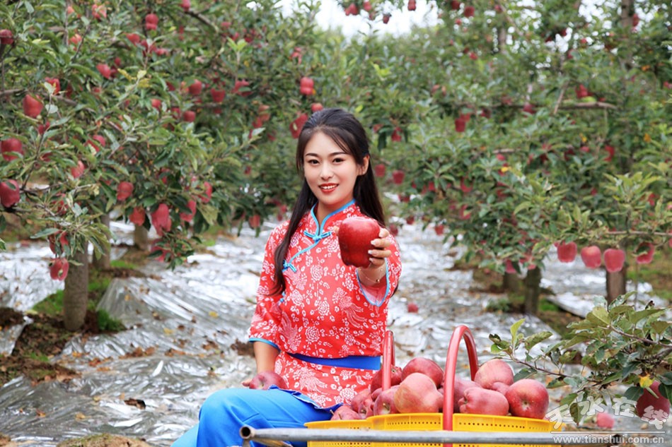 (圖為天水在線主播萌萌為花牛蘋果代言)