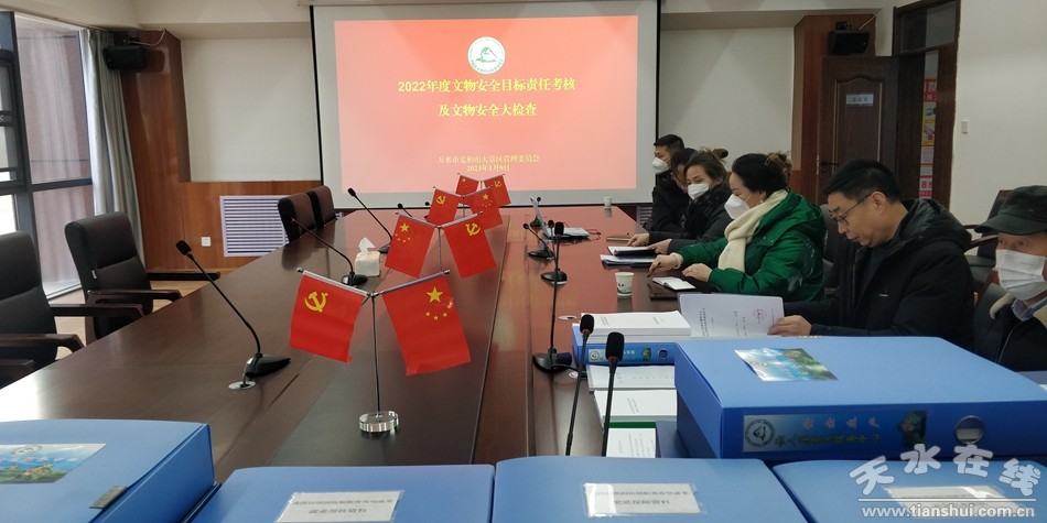 考核會上,麥積山大景區(qū)管委會對2022年度文物安全工作進行了總結(jié)匯報,考核組對照與市局簽訂的《2022年度文物安全目標責任書》以及2022年度甘肅省文物安全檢查表8大項目29項指標逐項進行印證材料的檢查,肯定了我委2022年度文物保護工作取得的成績,指出了不足。
